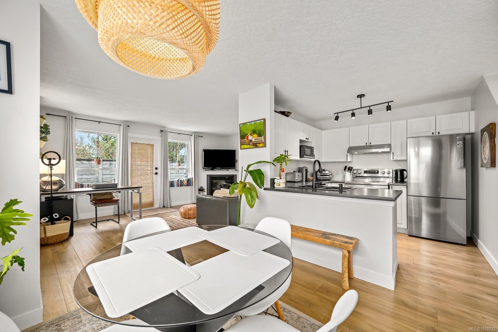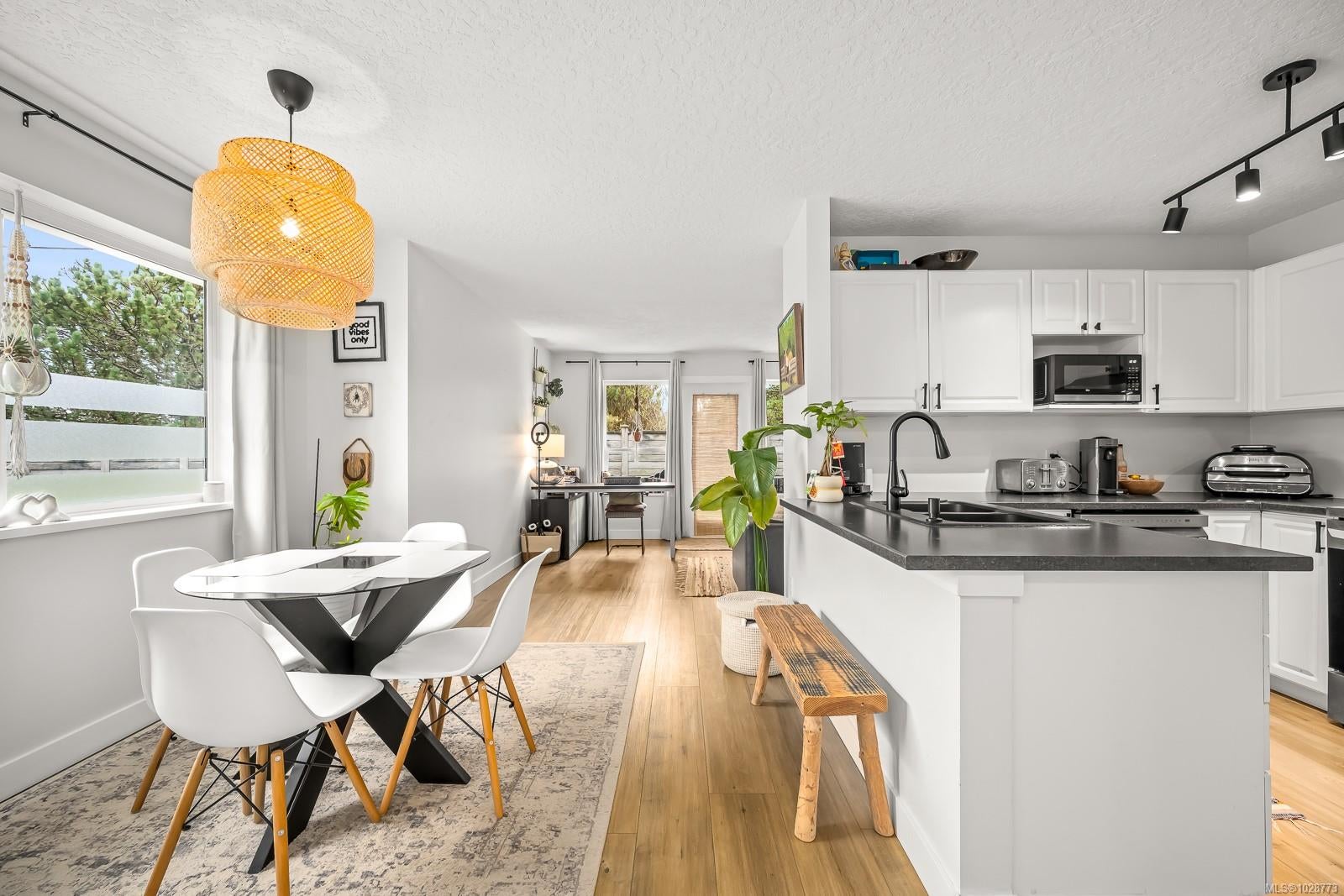 Welcome to popular Meadow Glen in the heart of Comox, where comfort, convenience, and community come together. This inviting two-level townhome offers a wonderful layout for families, first-time buyers, or anyone looking for easy living in a central Comox location. The main level features a bright open-concept living and dining area filled with natural light, creating a warm and welcoming space for everyday living and entertaining. A convenient two-piece bathroom on the main floor adds functionality for guests, while the nearby patio and green space provide the perfect spot to relax outdoors, enjoy summer evenings, or watch the kids play. Upstairs you will find three comfortable bedrooms, a versatile flex space ideal for a home office, reading nook, or study area, along with laundry conveniently located on the upper level. The generous cheater ensuite offers practical access from the primary bedroom and hallway, making busy mornings a little easier. This home has been lovingly maintained and upgraded over the years, including improvements such as updated appliances, paint, modern lighting, and durable vinyl plank flooring, creating a move-in ready home you can simply enjoy. Meadow Glen is a well-maintained and desirable strata community that offers excellent amenities for residents, including a playground, tennis court, and RV parking. The development is known for its friendly atmosphere and well cared for grounds. Location truly sets this home apart. Families will appreciate being close to schools, while everyday conveniences such as shopping, recreation, parks, and transit are all just minutes away. Whether you are commuting, running errands, or enjoying the many outdoor activities the Comox Valley is known for, everything you need is nearby. If you have been searching for a well-located townhome in Comox with thoughtful updates and a family-friendly setting, this Meadow Glen home is well worth a look